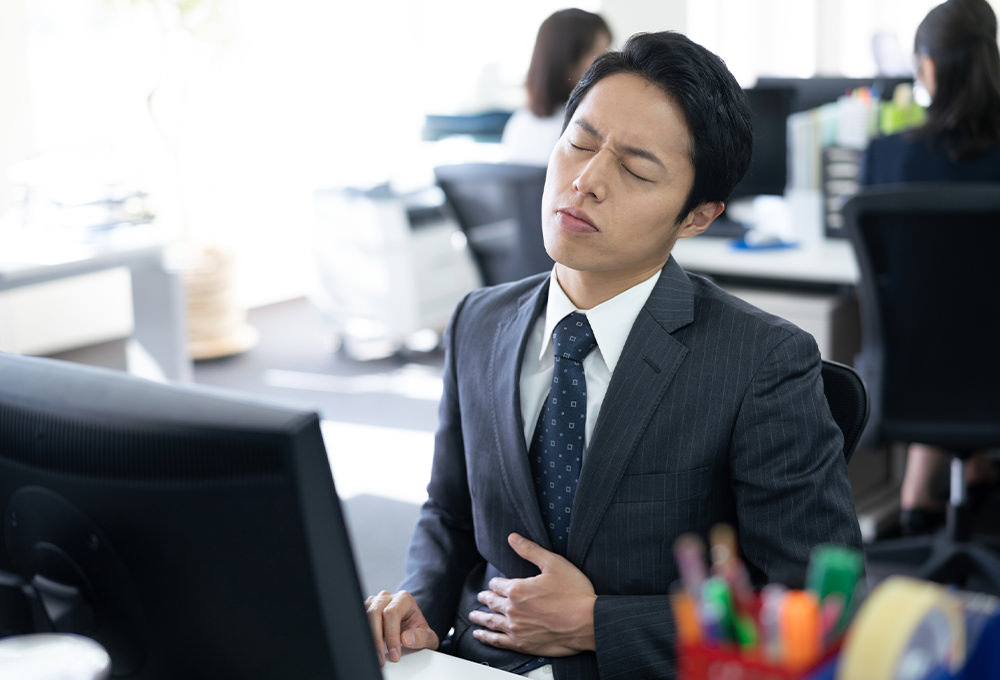 疲労の蓄積はストレスと同じく胃腸の機能を弱める原因となります。しっかりと睡眠時間を取り、規則正しい生活習慣を意識して、仕事中もこまめに休憩することで、疲労を溜め過ぎないようにすることが大切です。